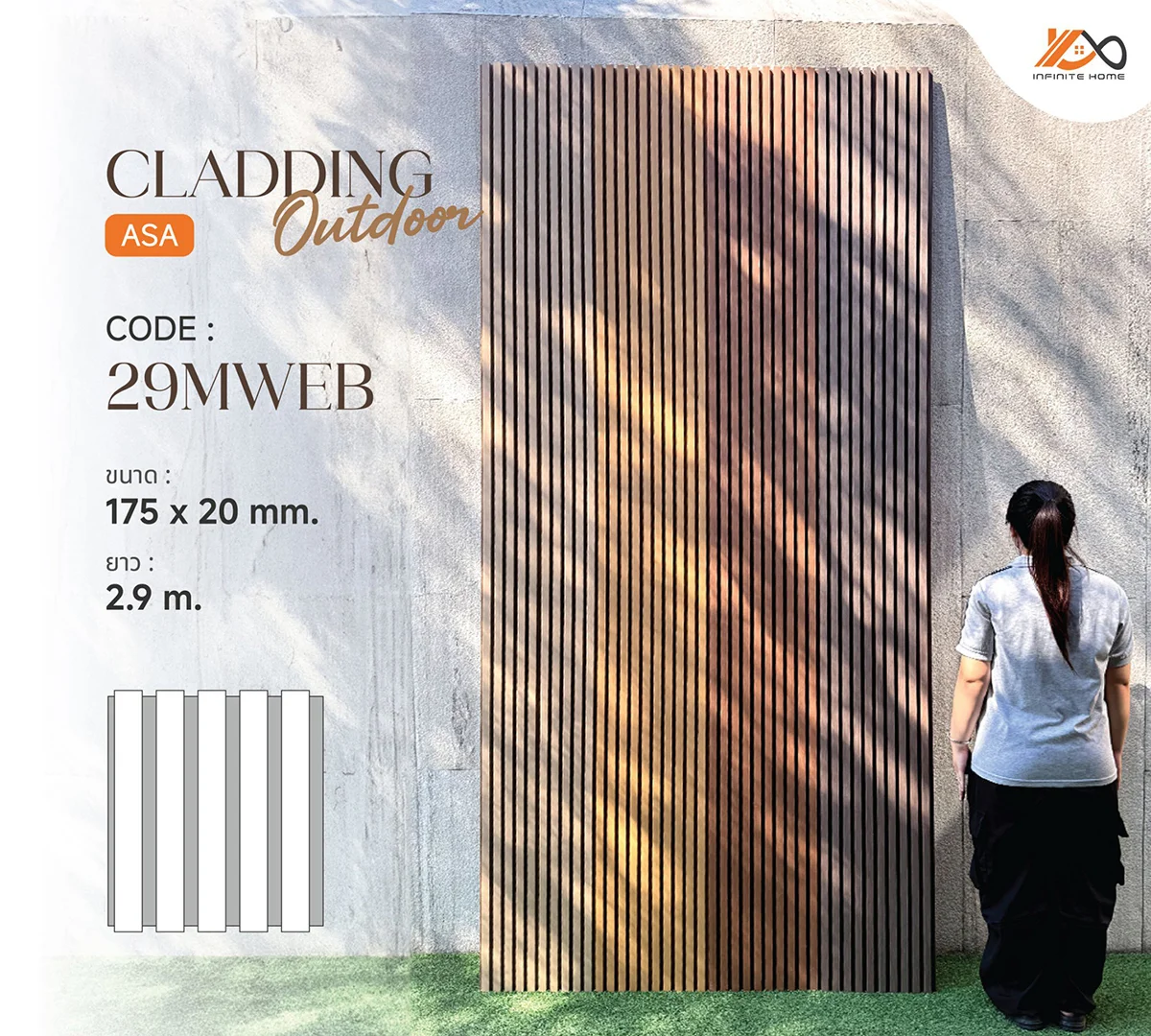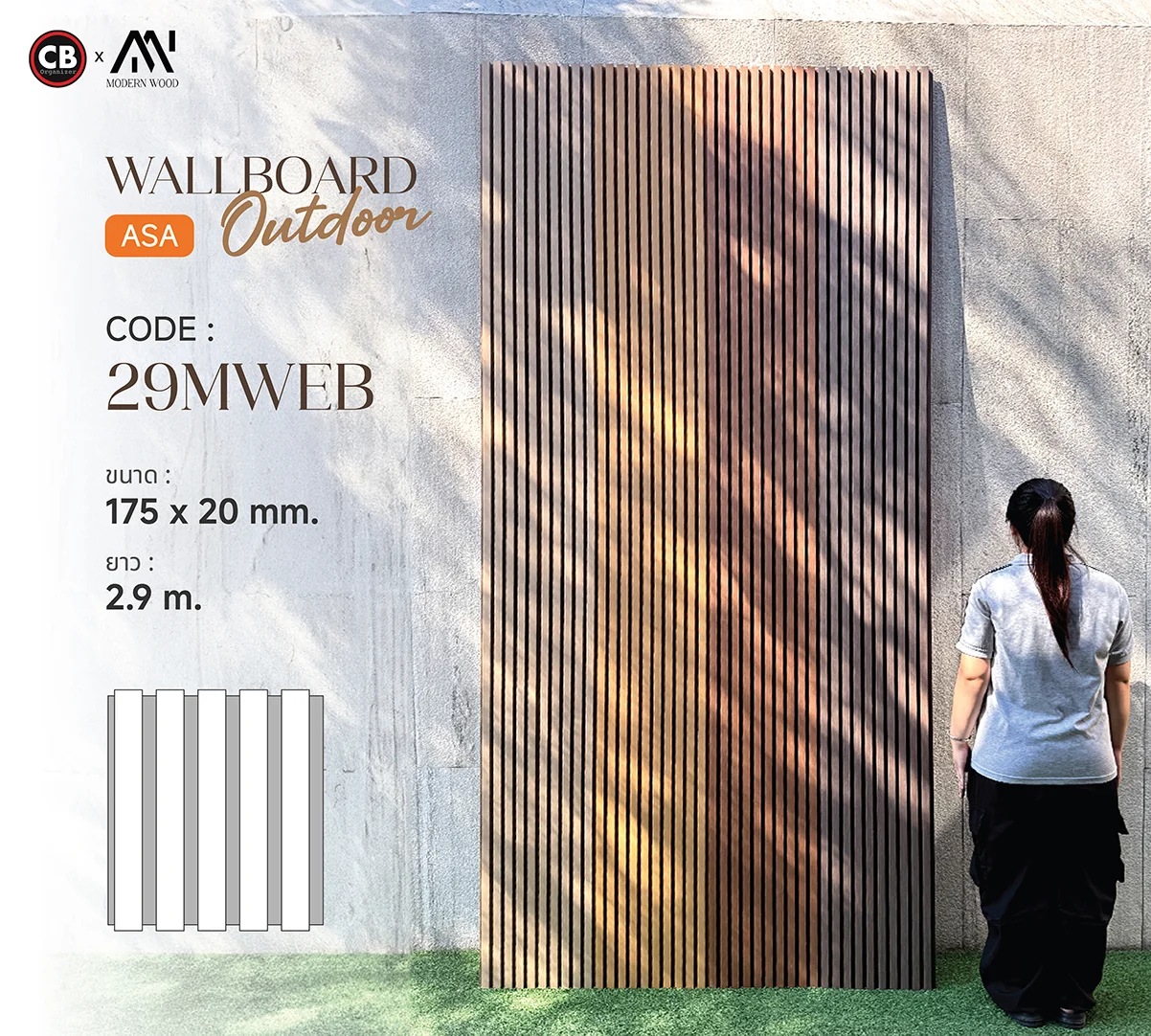 Wallboard (Outdoor) เป็นไม้เทียมนวัตกรรมใหม่ที่ตอบสนองความต้องการการออกแบบที่เหนือข้อจำกัด ของงานไม้ ทั้งความทนทาน ไม่ผุกร่อน ทนแดดทนฝน ปลวกไม่กิน ตอบรับกับยุคสมัยใหม่ ใช้ติดตั้งได้ทั้งภายใน และภายนอกตกแต่งได้ทั้งผนัง และเพดาน ช่วยประหยัดค่าใช้จ่ายในการดูแลรักษา และเพิ่มความมีระดับให้กับการตกแต่งบ้านของคุณ