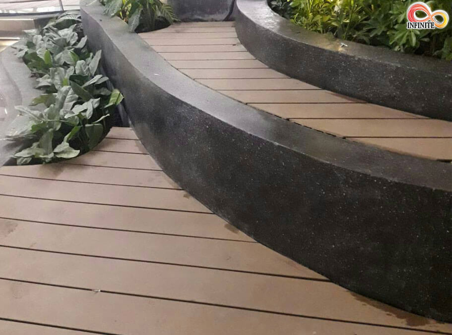 ผลงานติดตั้ง Wood Plastic Composite (WPC สี Teak) ที่ บริษัท พัฒน์พลชัย จำกัด