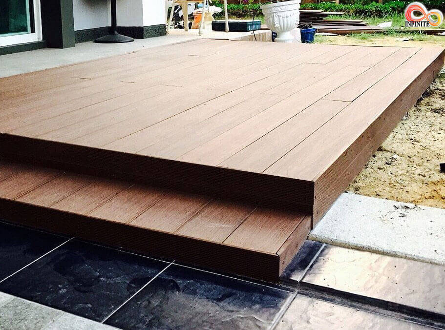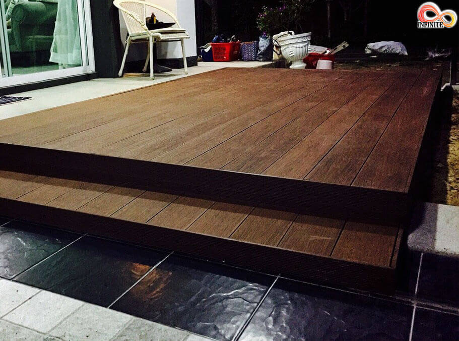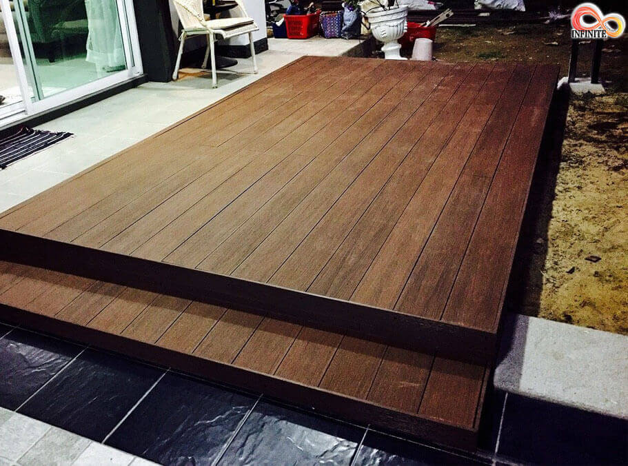 ผลงานติดตั้ง Wood Plastic Composite (WPC) (สี Mahogany) ที่ Zeen Condo