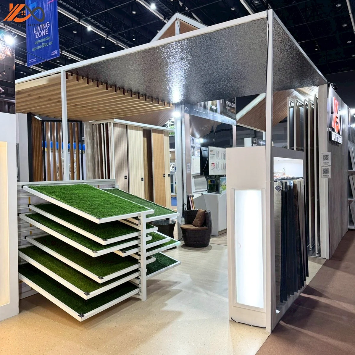 บูธของเรา INFINITE HOME ตั้งอยู่ที่ เลขที่ C7–C10, C27–C30 ถูกออกแบบในสไตล์โมเดิร์น เรียบหรู อบอุ่น สะท้อนแนวคิด “ศูนย์รวมวัสดุตกแต่งบ้านครบวงจร” ที่อยากให้ทุกคนได้สัมผัสประสบการณ์การแต่งบ้านที่ทั้งสวยงามและใช้งานได้จริง |