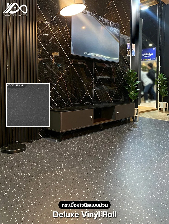 กระเบื้องยางม้วนลายหินขัด (Terrazzo Style) กำลังกลับมาได้รับความนิยมในงานตกแต่งสไตล์วินเทจ หรือมินิมอล ด้วยลวดลายเฉพาะตัวที่ให้กลิ่นอายของยุค 80s–90s แต่ยังคงความทันสมัยในวัสดุ และการใช้งาน |