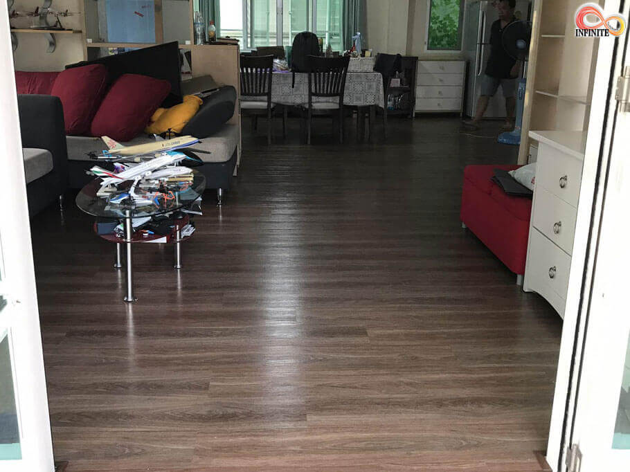 ผลงานติดตั้งกระเบื้องไวนิล รุ่นพิเศษ (SPC7 หนา 4 mm.) ที่ หมู่บ้านภัทรา (ลูกค้าบ้านและสวน)