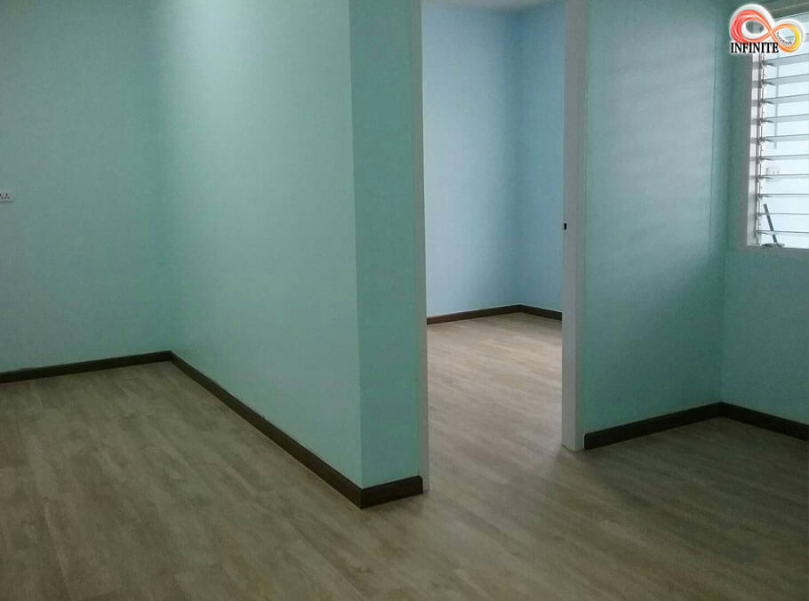 ผลงานติดตั้งกระเบื้องยาง กระเบื้องยางลายไม้ (R7 หนา 3mm.) ที่หมู่บ้านเอื้ออาทร ท่าตำหนัก อ.นครชัยศรี จ.นครปฐม
