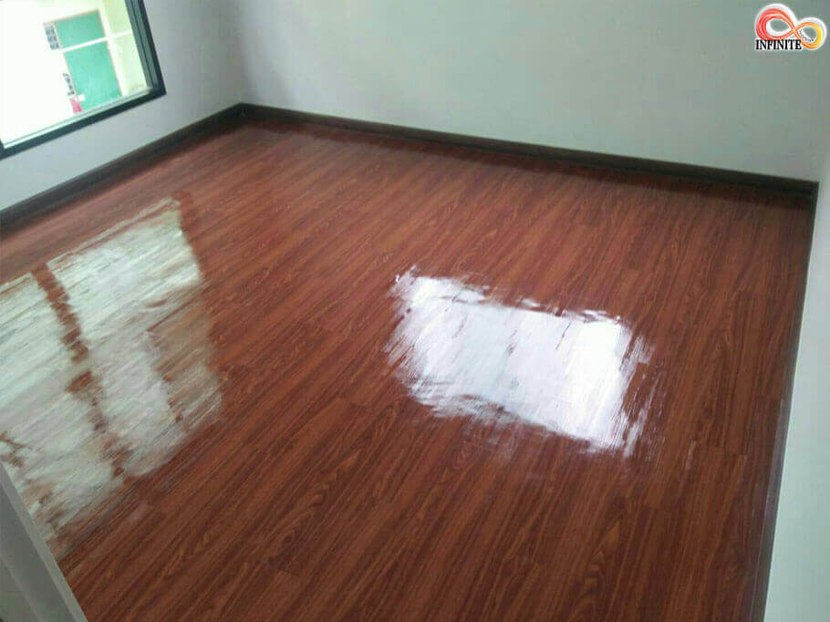 ผลงานติดตั้งกระเบื้องยาง กระเบื้องยางลายไม้ (M7-a) ที่ โครงการ บ้านธนบดี เฟสแรก ห้องตัวอย่าง