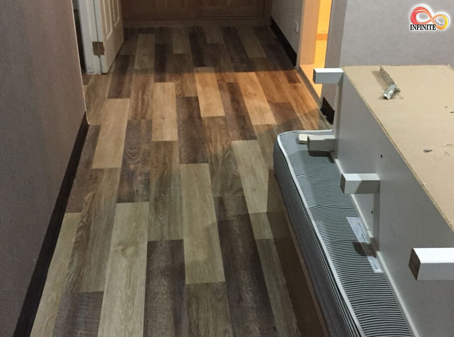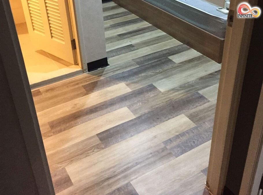 ผลงานติดตั้งกระเบื้องยาง กระเบื้องยางลายไม้ (M1, M3, R7 หนา 3 mm.) ที่ คอนโดนวธารา ซ.ประเสริฐมนูกิจ33
